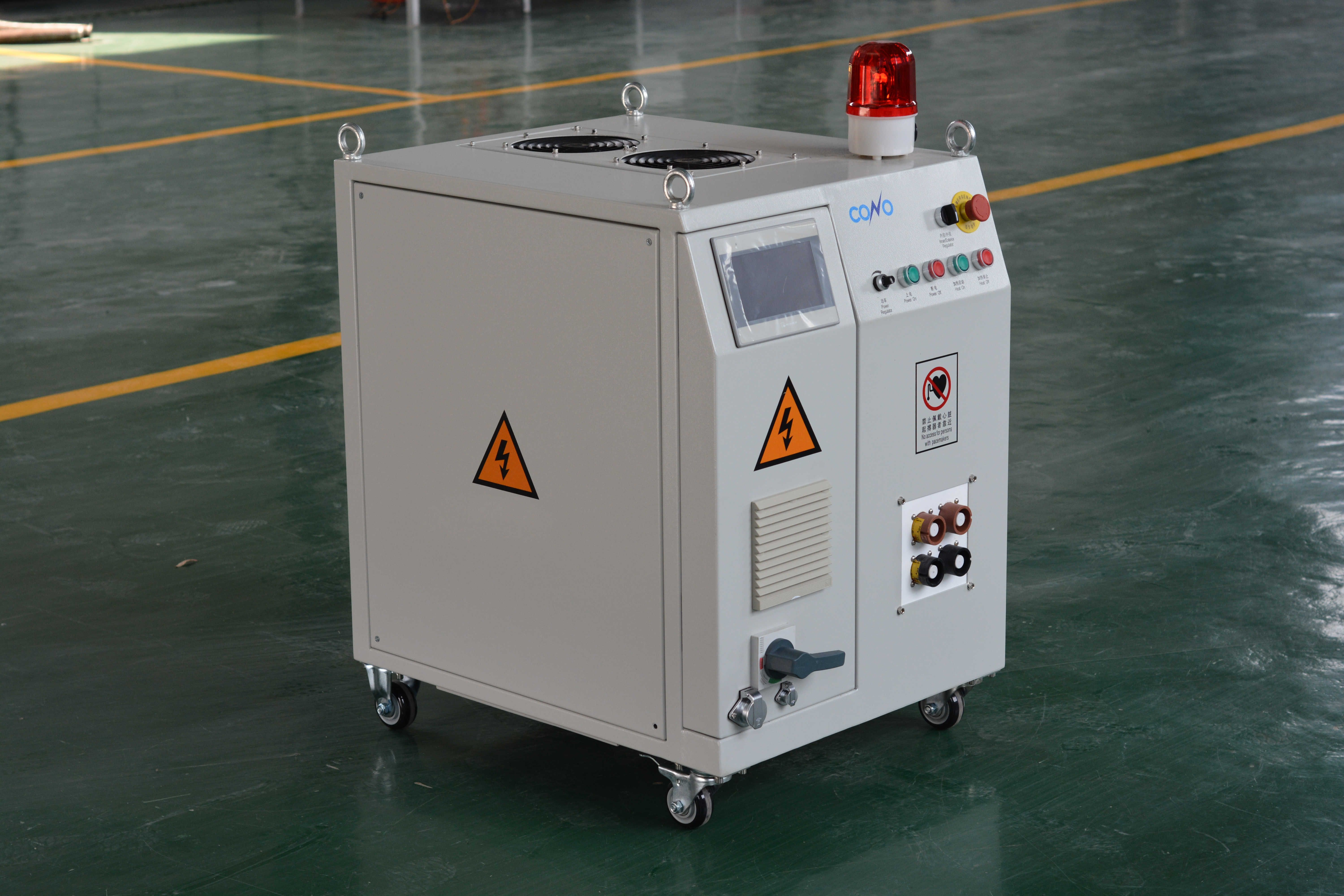科諾空冷電源頻率范圍1~20kHz,功率范圍30~200kW,不需要冷卻水、能夠連續(xù)長時間工作、控制精度高、適合野外作業(yè),主要應(yīng)用于石油天然氣管道涂覆加熱、鐵軌焊后熱處理等領(lǐng)域。